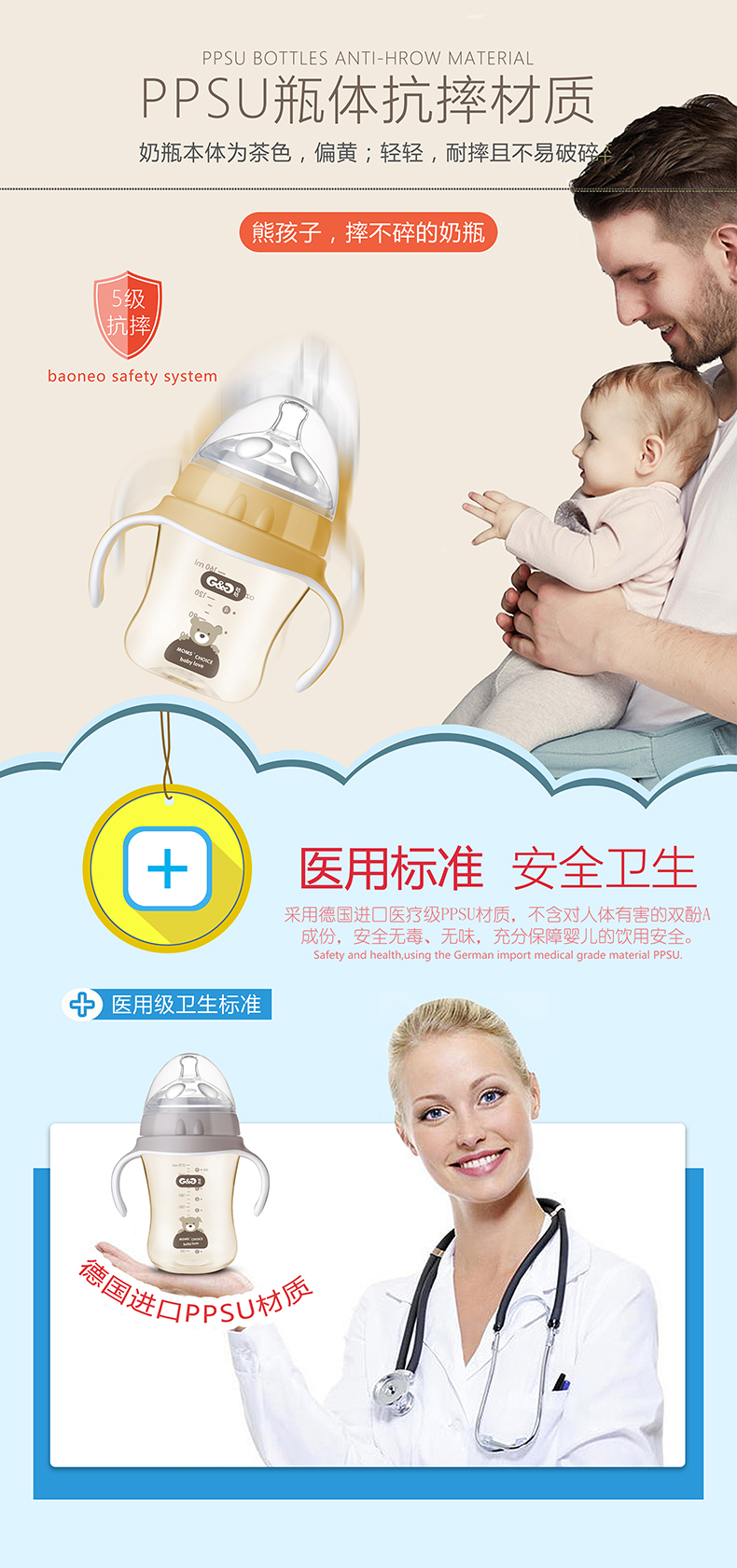 顏 色:都市灰/典雅黃/簡約白 材 質:PPSU(奶瓶瓶身呈淡茶色)